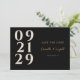 Make your engagement announcement stand out with this modern and elegant Contemporary Save the Date design. Featuring bold number typography in ivory on a sleek black background, with a touch of gold highlighting the couple's names for a luxurious touch. The minimal and contemporary design on the front ensures your guests are informed about your upcoming wedding, while the back provides space for additional details and a convenient QR code. This save the date invitation is perfect for couples looking for a stylish and sophisticated way to announce their special day.
