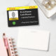 This bold and eyecatching staff badge design features editable information such as a portrait photo, a business/company logo, a staff member name, and a role name. A badge like this could be used to identify somebody as an employee of a business, company, or organization. [~Z0000450]