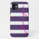 This modern iPhone 5 Barely There case features a bold striped pattern and a hip script font for the name. Easily customized. - plum