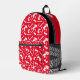 Bold stylized tractor graphic and wheat personalized add your own name repeat patterned racksack backpack bag in bright red, white and black. Ideal for boys or those who like farming and tractors. Customize with your own choice of short name all over currently reads Ruben and your school or family name or just your name at the top of the bag. The background colour can also be changed if required, currently bright red. Original art and design by Sarah Trett for www.mylittleeden.com