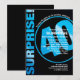 This bright and fun birthday invitation will let your guests know the most important part; it's a surprise! Bright blue on black with a giant 40 with your custom wording for a winning surprise birthday invite. The back reminds them to shhhh!