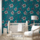 Bold Teal Floral Pattern Removable Wallpaper