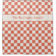 Bold terracotta and cream chequered pattern features your family name in a modern burnt orange serif font within an off-white band near the top. Personalize it with your name or text in the sidebar.