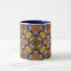 Bring bold energy to your beverage break with this vibrant, tribal-inspired tile mug. Featuring a symmetrical design of petal and leaf shapes in earthy mustard yellow, terracotta orange, olive green, and slate blue, the pattern evokes both African textile motifs and traditional folk art. Finished with a striking deep blue handle and interior, this mug makes a statement from every angle. Perfect for eclectic decor lovers, travelers at heart, or anyone who enjoys rich, global-inspired design.