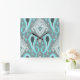 Bold Turquoise Blue Grey Ikat Tribal Art Pattern Square Wall Clock