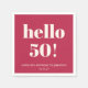 Celebrate in style with these bold and cheerful napkins that say "hello 50!" in a playful and modern font. Perfect for milestone birthday celebrations, these customizable napkins add a personal touch to your party decor, featuring the honoree's name and date below the vibrant centerpiece text. Ideal for creating a fun and memorable atmosphere, these napkins are a festive addition to any table setting or cocktail bar.