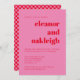 Bold Typography Bright Pink and Red Chequerboard Retro Wedding Invitation