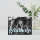 Bold Typography Sky Blue Photo Graduation Party Invitation Postcard