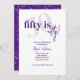 Bold typography with calligraphy 50 is nifty birthday party invitations in purple and white. The back features an all purple background with white spots/bubbles to emulate the bubbles in wine and champagne to celebrate how we age like a find wine. All text is completely customizable.
