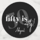 Bold typography with calligraphy 50 is nifty birthday party confetti in black and white. All text is completely customizable and matches our other 50 is nifty products. A great addition to the tables and serving areas.