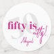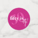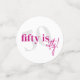 Bold typography with calligraphy 50 is nifty birthday party confetti in pink and white. All text is completely customizable and matches our other 50 is nifty products. A great addition to the tables and serving areas.