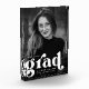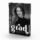 Stylish graduation photo block featuring the graduate's vertical photo with "grad" in bold white lettering. Personalize the photo block by adding the graduate's name, graduation year, and school.