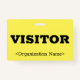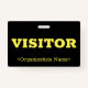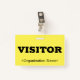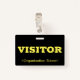 This eye-catching badge design features the message "VISITOR", and a customizable company name or other custom message. A badge like this could perhaps be used to indicate that a person is a known and authorized guest or visitor at a business or workplace. [~Z0000307]