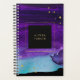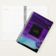 This glam, dramatic planner features a vivid purple and blue watercolor splash on a black background, with faux gold look accents.
