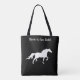 Stylish bold white horse silhouette on black Tote Bag. Text can be personalized. Horses symbolize the spirit force of nature.