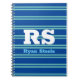 Bold White Monogram, Lt. Teal Lines on Deep Blue Notebook