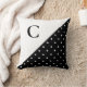 Bold White on Black Polka Dot Pattern Monogram Throw Pillow