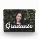 Celebrate your graduate's achievement with a personalized graduation photo keepsake. The photo block features the graduate's horizontal photo with "Graduate" in a bold white script. Personalize the graduation photo block by adding the graduate's name, school, and graduation year.
