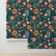 Pretty wildflowers peel and stick wallpaper design for an accent wall or full wall. Green background.