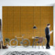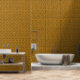 This image showcases a vibrant and seamless yellow brick pattern with bold black outlines, creating a modern, geometric, and urban aesthetic. The repetitive, clean layout evokes a sense of structure and stability, perfect for use as a background, wallpaper, or textile design. Its striking contrast between the bright yellow and black lines adds a contemporary and eye-catching appeal, ideal for art prints or design projects.