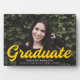 Celebrate your graduate's achievement with a personalized graduation photo keepsake. The plaque features the graduate's horizontal photo with "Graduate" in a bold yellow script. Personalize the graduation photo plaque by adding the graduate's name, school, and graduation year.