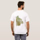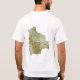 An editable title and slogan accompanies the red, yellow and green horizontal bands of the Bolivian flag on the front of this t-shirt. The back displays a detailed map of Bolivia.