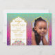 Bollywood or Arabian Nights theme birthday party invitation photo card in purple, magenta, and aqua ombre with gold foil accents.