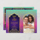 Bollywood Arabian Nights theme design with gold glitter and foil effect save the date postcard with photo insert.