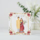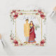 A fun and beautiful design of an illustrated Bollywood style wedding couple surrounded by elegant flowers and golden frame, includes personalization .