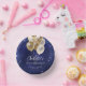 Un arrière - plan bleu marine avec d'élégants faux étincelles et des ballons d'or. La couleur bleue est inégale. Personnalisez et ajoutez un nom et un âge. Lettres blanches.