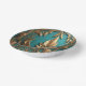 Beautiful gold leaves against a teal background cover the inside of this paper bowl.