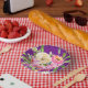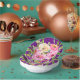 La parties scintillant violette est la toile de fond brillante pour cette impression florale rose féminine dans les tons rose, pêche et crème. Ces boules accrocheuses raviront les festivités.