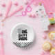 Un joyeux pastel bleu et noir à damiers thème de fête de premier anniversaire