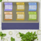 Bolts of Fabric tea kitchen towel 2013 by Kristie Hubler with fabric bolts unraveled for each month, and the letters and numbers are swirling fabric fonts. As seen on spoonflower.com/fabric/1510684