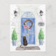 Announce your new address with our stylish announcement featuring a Bombay cat, blue front door, welcome mat, slate sign, topiaries and a floral wreath set on a grey brick background.