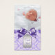 Photo mauve damassé Bomboniere tags avec joli arc violet et élégant tag argent accroché sur un bel arrière - plan mauve damassé. Vous pouvez ajouter votre photo à l'avant et le texte de votre choix à l'avant et à l'arrière de cette étiquette de faveur violette. Il vous suffit de percer un trou et d'ajouter du ruban ou une corde et de vous attacher à votre faveur.