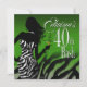 Bombshell Zebra Edwina's 40th Birthday Green Invitation