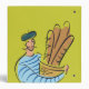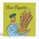 This recipe binder features a man wearing a striped shirt and a beret carrying a basket of French bread and caption Bon Appetit. Text on front and spine is customizable.