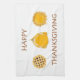 BON THANKSGIVING tourte tourte à tourte de dinde serviette de cuisine, art par Kristie Hubler, avec tourte citrouille qui a le bord de la croûte feuilleté, une dinde Thanksgiving rôtie, et une pâte treillis à croûte bleuet à tarte