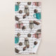 Un collage de chocolat chaud et de marshmallows, cacao, bonbons au chocolat, sundaes et manuscrits. Dans les couleurs turquoise, rose, marron et blanc. Un joli set de serviettes d'hiver.