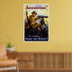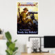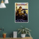 This vintage World War I poster features a U.S. soldier firing a machine gun on a battlefield. His hand is reaching for more ammo. It reads, "Ammunition! And remember - Bonds buy bullets!" Celebrate American and WW1 History with this digitally restored vintage war poster from The War Is Hell Store.
