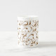 This charming bone china style mug is shown in white with a brown swirls print design.