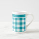 Bone China Mug, Teal and White Check Gingham Bone China Mug