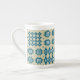 A chic Bone China Coffee Mug, with a pattern of traditional Welsh Tapestry motifs in Navy Blue on a Sable background. This pattern will fit all Mug sizes.