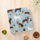 De mignons bergers allemands en noir et tan, noir et rouge, noir et argent, blanc et dos de couleur, s'assoient et se tiennent avec des os et des empreintes de pattes de chien éparpillés sur un arrière - plan bleu clair.