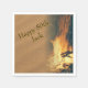 Bonfire birthday napkins with custom text. A burning fire image with sand background. Sample wording is, "Happy 50th - with name".
