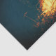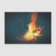 Tissue paper with an image of a burning bonfire / campfire. Dark blue - black colour with bright yellow, orange and red fire burning some wood.
