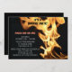 Fun Bonfire Party invitation- Reads 'It's a Bonfire Party' in fun, black lettering at the top over a huge photo of flames against a black background. On the left it reads 'Please Join the Fun' in red lettering with drop shadow. Rest of cookout party details are below in white. Back has matching, solid black background. Fun campfire invitation design for lots of celebrations- family reunion camping trip, bbq cookout invites, backyard party, outdoor fall party, etc. There are different camping party invitation styles and sizes, too. Plus, we have coordinating flames envelopes, as well as lots of other rustic camping theme party supplies and other campfire design products in our Zazzle.com/angela65 shop.
