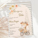 This cute Bonjour Bebe Paris inspired baby shower invitation will be the perfect beginning to your French themed baby shower. Featuring the Eiffel Tower, romantic flowers and a cute French giraffe riding a Parisian flower bicycle. A romantic gender neutral invite for a Paris baby shower.