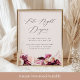 Encourage guests to leave sweet or silly messages for those late-night changes with this Bonjour Bébé diaper notes sign. Featuring burgundy florals, blush pink background, and elegant calligraphy, it’s a perfect Parisian-inspired touch for a baby shower in the fall or winter. Available printed or as a digital download. From Redwood & Vine Design Co.
